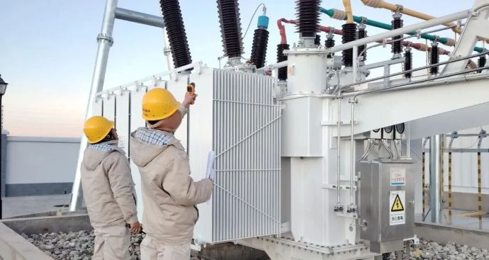 運維人員在巡檢過程中進行110kV主變測溫。