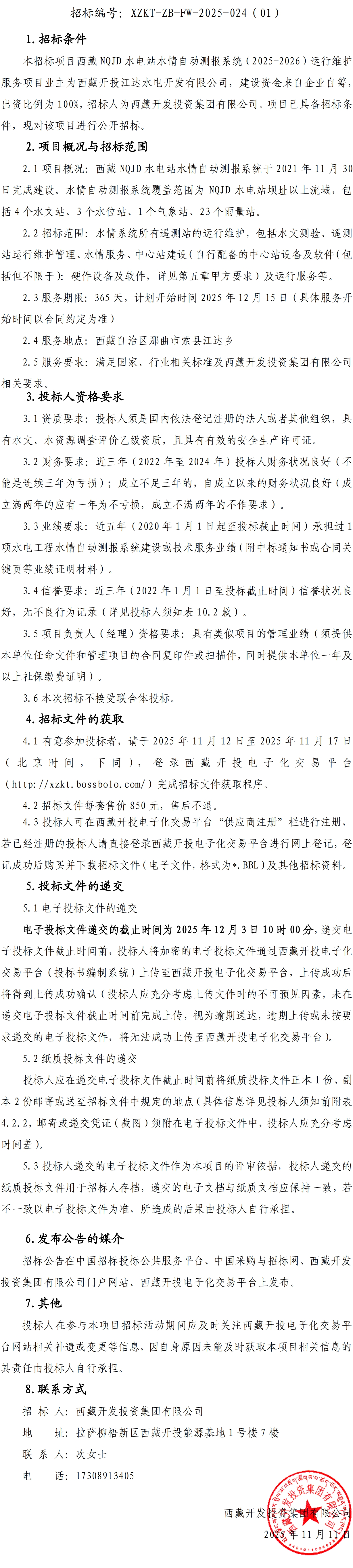 西藏NQJD水電站水情自動(dòng)測(cè)報(bào)系統(tǒng)(2025-2026)運(yùn)行維護(hù)服務(wù)(二次)招標(biāo)公告